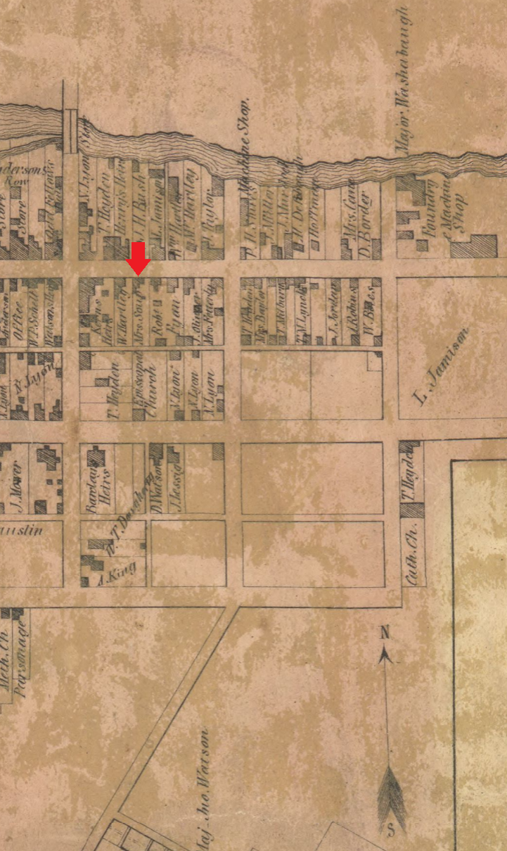 1844 to 1855: The 1983 booklet associates Andris Saupp with Lot No. 155 in the town of Bedford during the years 1844 to 1855. I think lot 155 is at the southeast corner of the intersection of East Pitt Street and South East Street, but I'm not 100% certain.