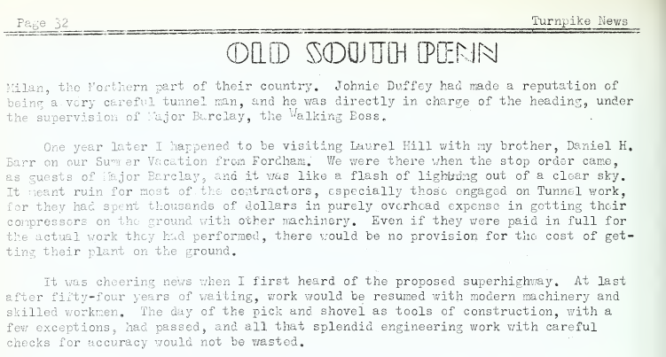 1884: The following composite image is from the July, 1934 issue of the "Turnpike News". It indicates that construction on Knupp's tunnel began in February of 1884, and confirms that it became the (now abandoned) Laurel Hill tunnel of the Pennsylvania Turnpike.