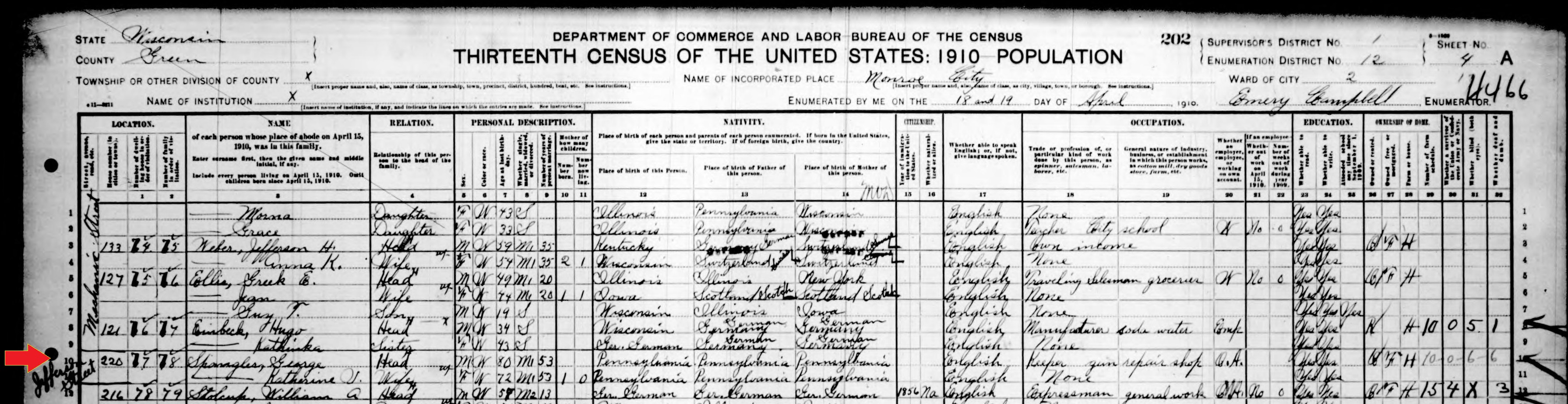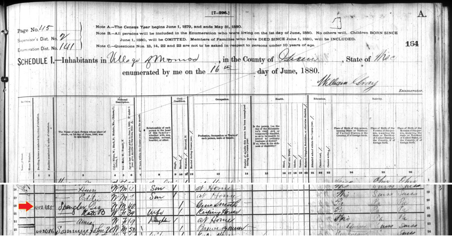 1880: The following excerpt is from the 1880 census records of Monroe in Green County, Wisconsin: