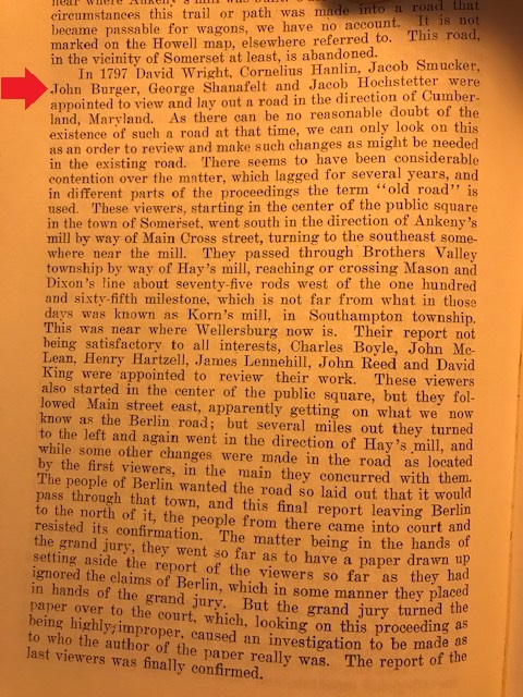 1797: The following item relating to John Berger is from Volume II, page 195 of the 1906 book "History of Bedford and Somerset Counties Pennsylvania":