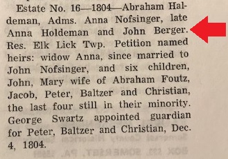 1783: The following excerpt relating to John Berger is from Volume II, page 496 of the 1906 book "History of Bedford and Somerset Counties Pennsylvania".