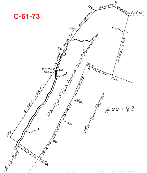 Survey C-61-73 (below) is located on the west side of survey A-40-83 and states, "Situated on the Waters of Town Creek in Colerain Township..."