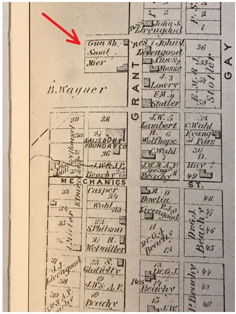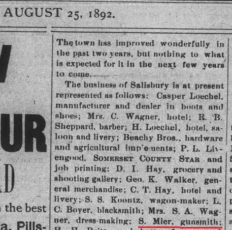 1892: The article from the August 25, 1892 issue of the "Somerset County Star" newspaper identifies Samuel Mier as a Salisbury, Pennsylvania gunsmith..