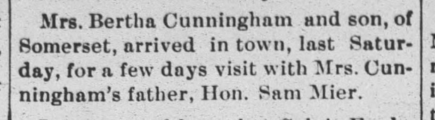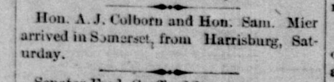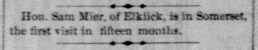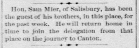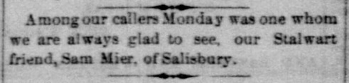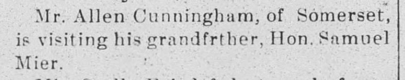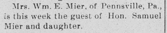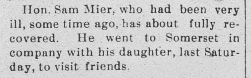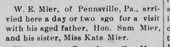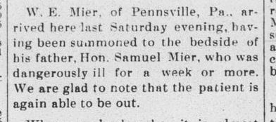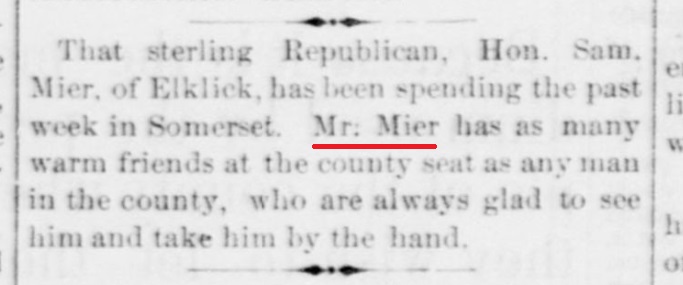 1885: The following is from the January 21, 1885 issue of the "Somerset Herald". It indicates that Samuel Mier visited the newspaper office.