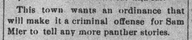 1891: The following item is from the December 24, 1891 issue of the "Somerset County Star" newspaper. It makes a joke about Samuel Mier's panther stories.