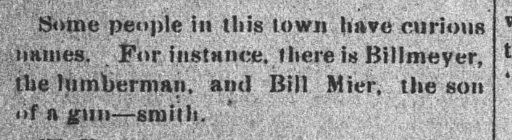 1891: The following is from the December 30, 1891 issue of the "Somerset Herald". It repeats the joke about Samuel Mier's panther stories, suggesting that Samuel Mier was well known in the town of Somerset.