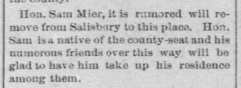 1898: The following is from the February 23, 1898 issue of the "Somerset Herald". It suggests that Samuel Mier is considering moving back to Somerset.