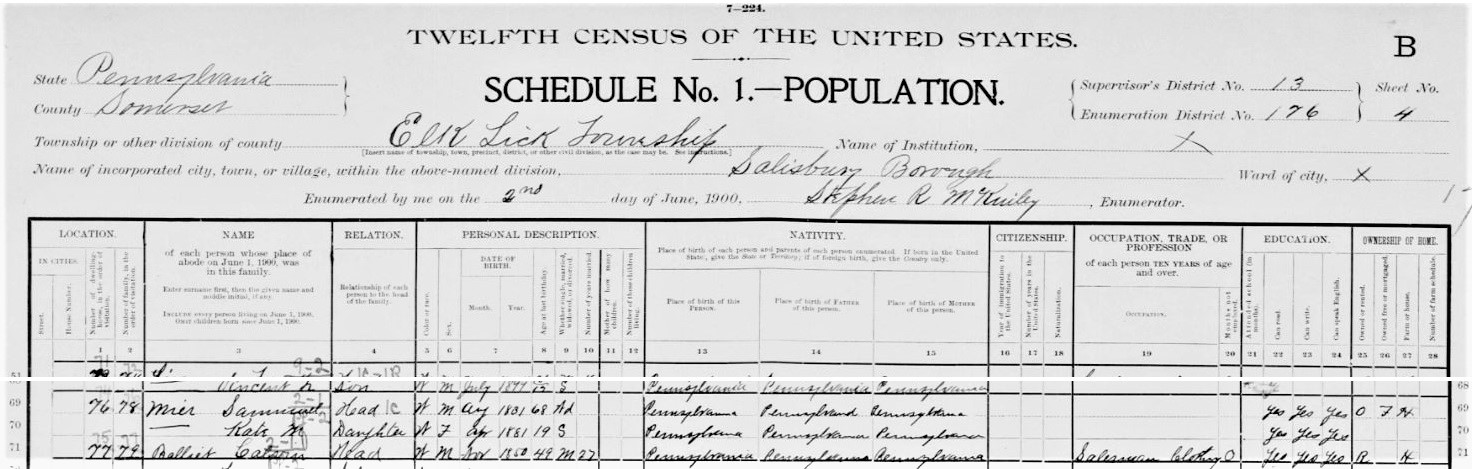 1900: The following excerpt is from the 1900 census: