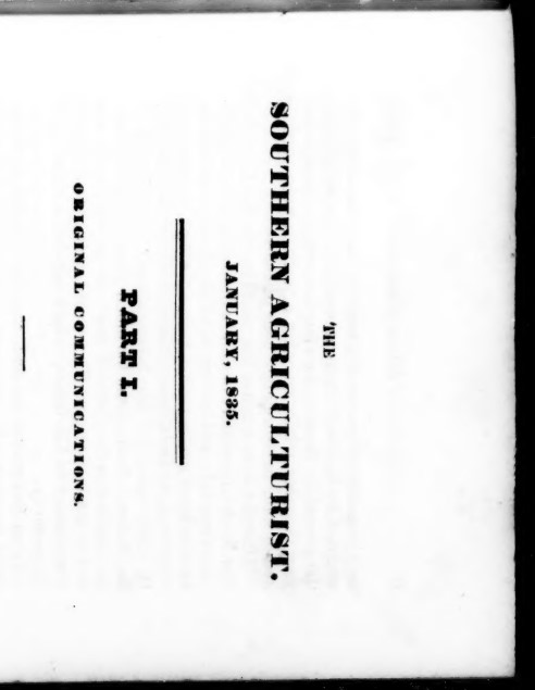 The following pages are from the January, 1835 issue of "The Southern Agriculturist".