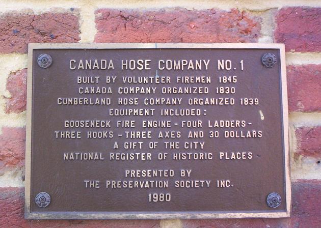 The 2009 photos below were provided by Mike McKenzie. They show the 1845 building of the Cumberland Hose Company, in Cumberland, Maryland. The building is located on the Will's Creek side of Mechanic Street, nearly opposite where Smith Street comes out on Mechanic Street.