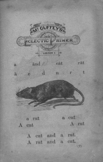 These 2001 scans are from an 1896 "McGuffey's Eclectic Primer" that now belongs to a descendant of Allen Korns of Southampton Township, Somerset County, PA. The top scan is a sample page to show what the book looked like inside. The bottom scan with the Allen Korns name is from the inside of the back cover. The name was written in pencil and traced in ink; I recall that Allen's wife Gladys (my grandmother) often traced over old names in books when they were fading; this may be her ink work.