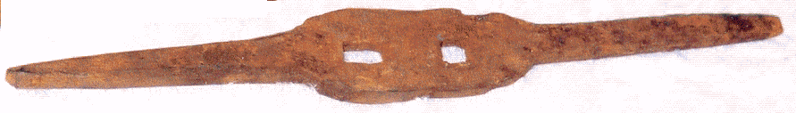 This hand-forged 19th century wrench is similar to a modern-day tap wrench and is a good example of how the old-time gunsmiths made most of their own tools. It was found in a bucket of old Lepley gunsmithing hardware in Southampton Township, Somerset County, PA in the 1970s. Its overall length is 8-3/8 inches, and it is made from ferrous material. The corners of the handles are beveled to protect the user's hands.